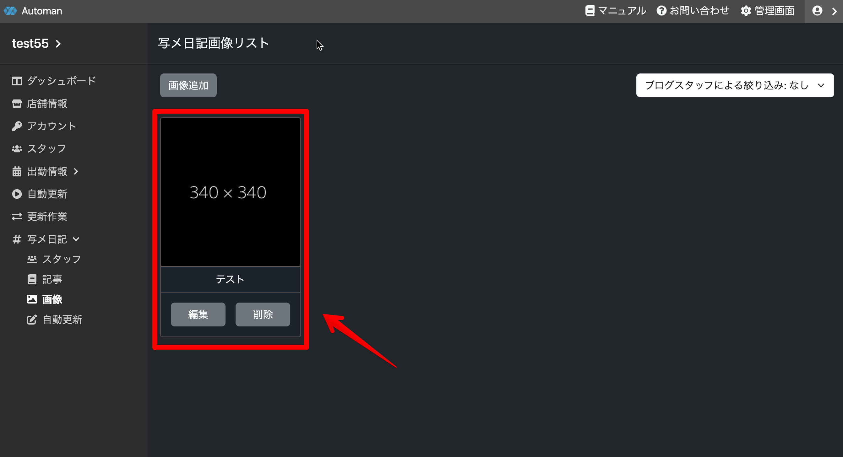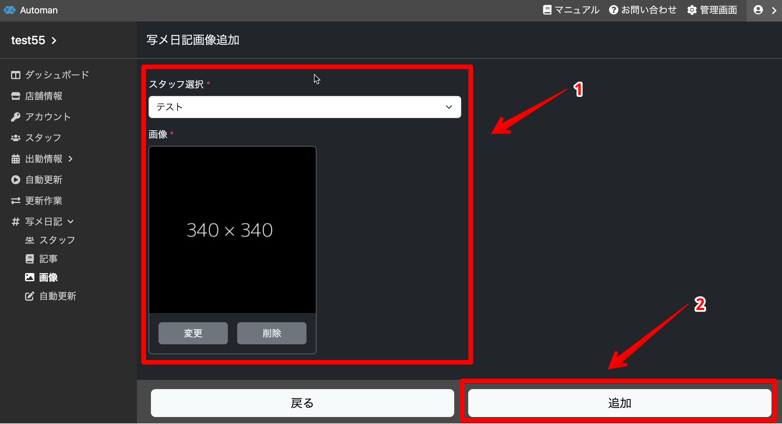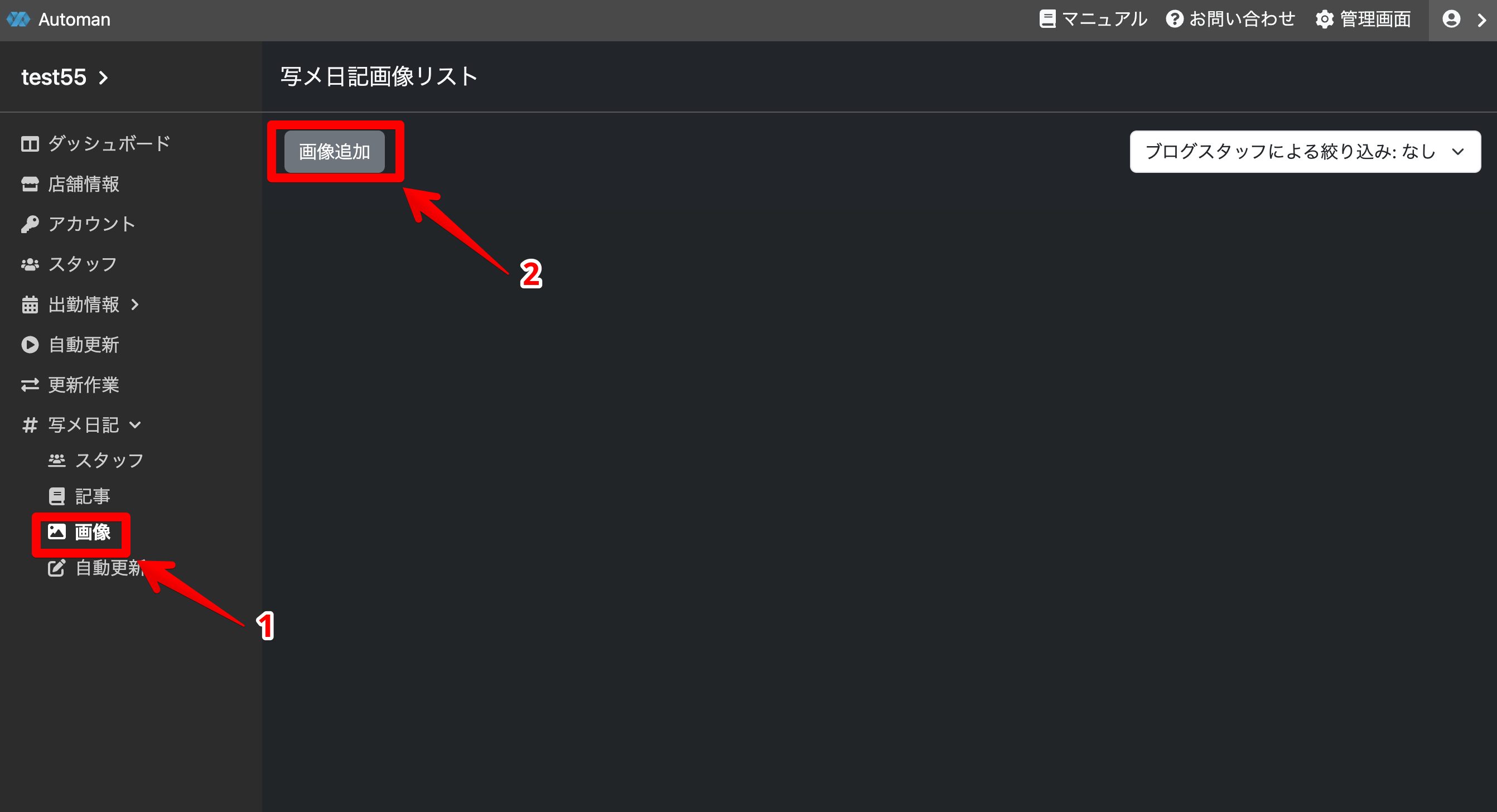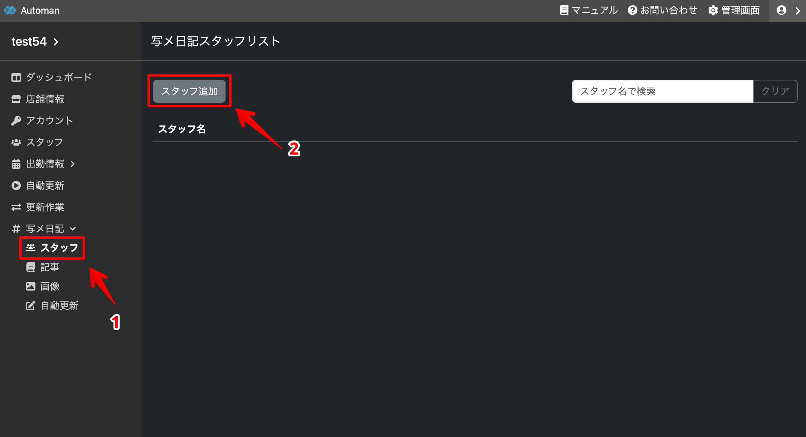 写メ日記の投稿者になるスタッフを追加します。