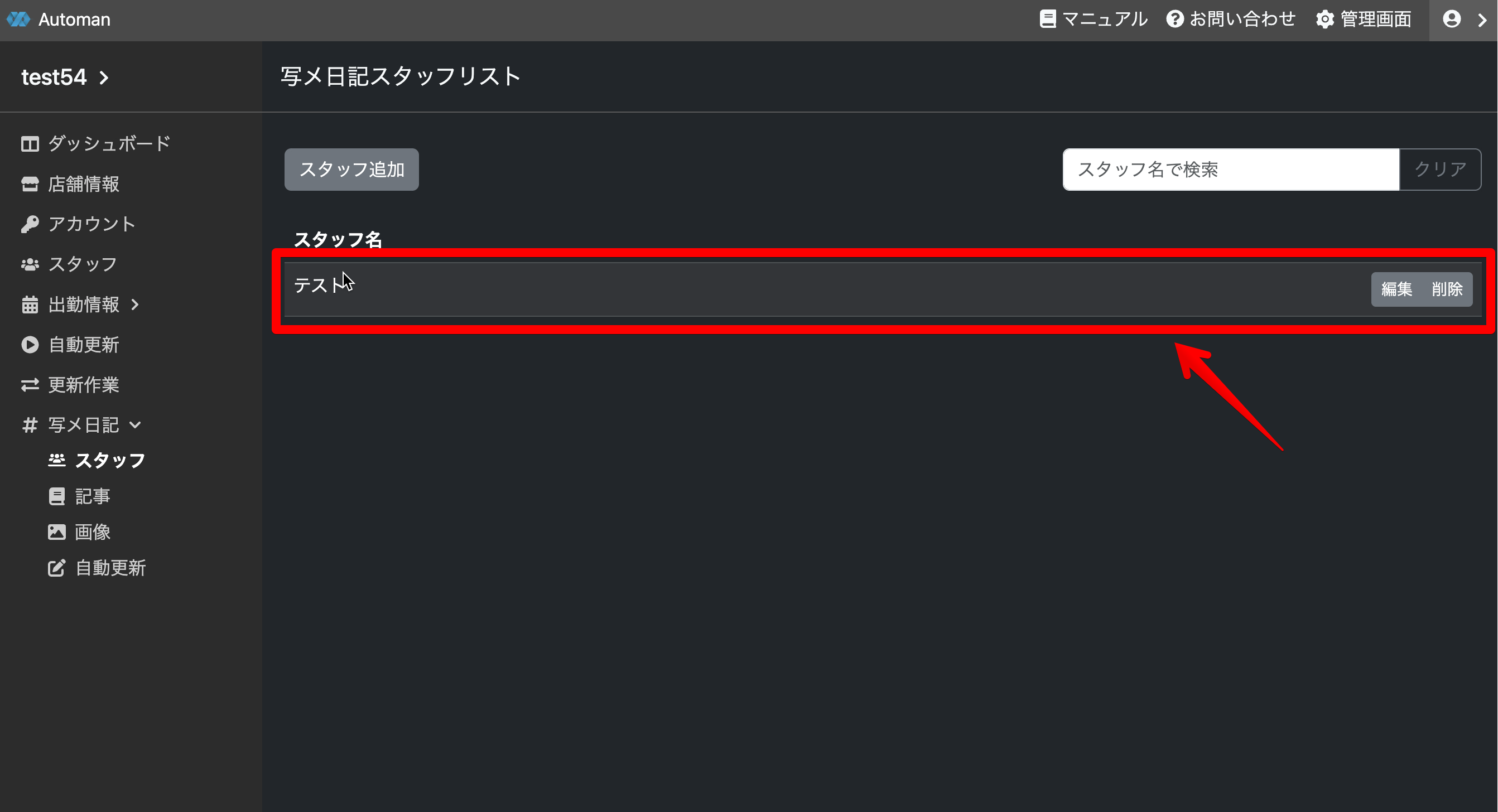 追加したスタッフをリストから確認します。