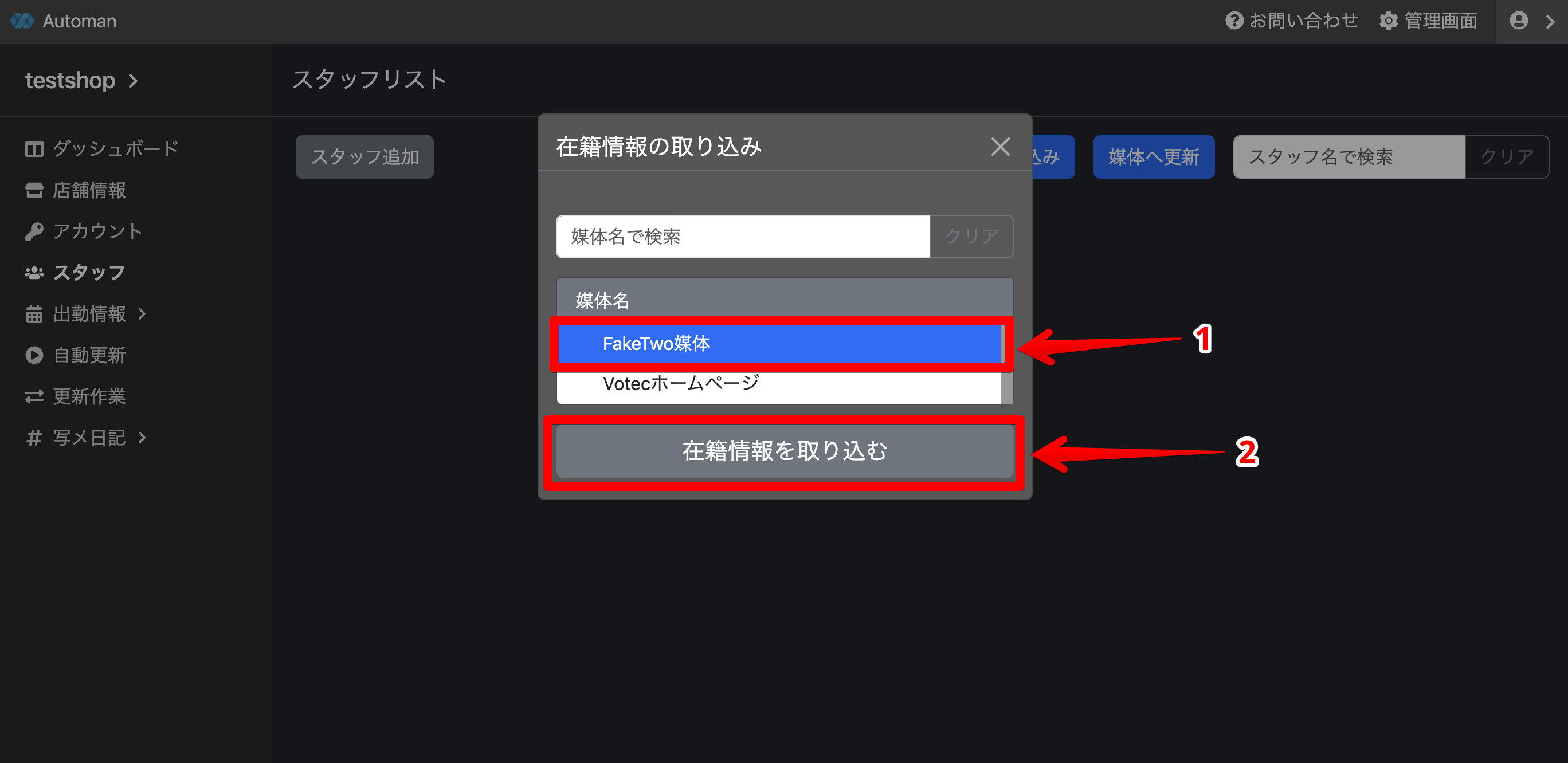 メジャー媒体やお店のホームページから在籍情報の取り込みができます。在籍情報の取り込み機能はあくまで初期設定をサポートする機能で、登録されている在籍情報の上書きはできません。媒体ことにコンテンツの文字数制限なのが異なるので取り込みの後に媒体ことにコンテンツを設定する必要があります。